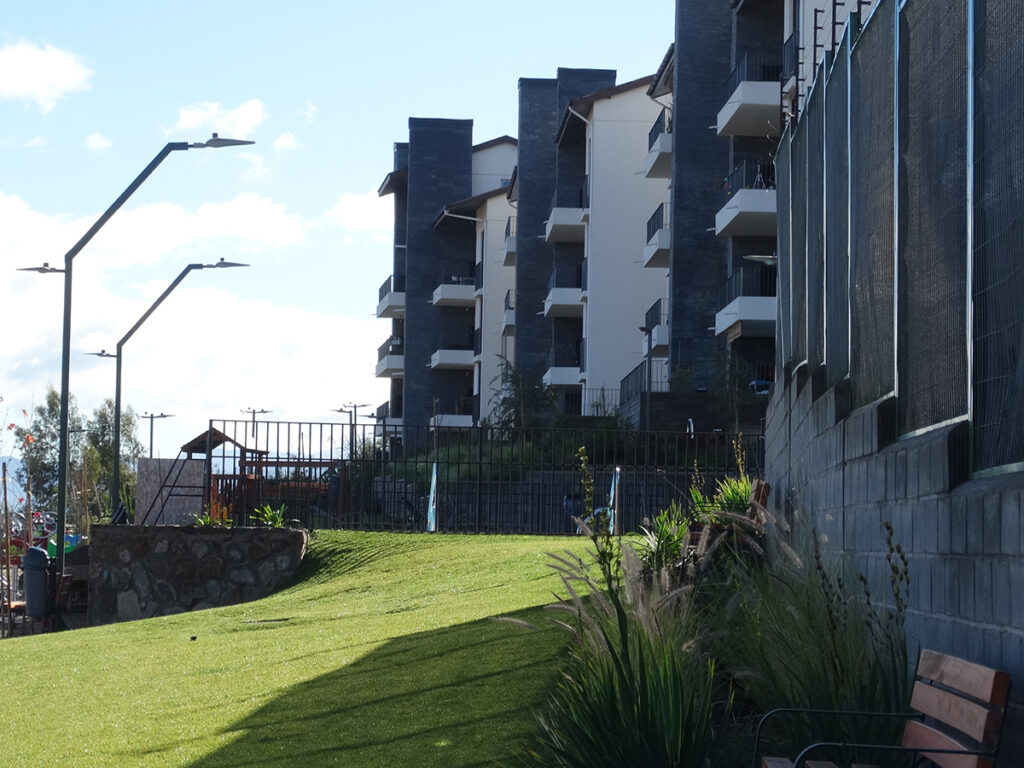 - Amplias áreas verdes, juegos infantiles; senderos de maicillo, bicicleteros y juegos infantiles